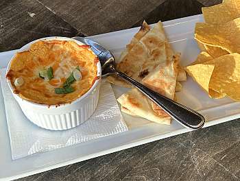 Herb and garlic roasted pulled chicken blended with buffalo sauce & cream cheese, broiled with cheddar & mozzarella cheeses. Served with toasted naan and corn chips